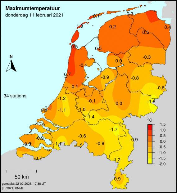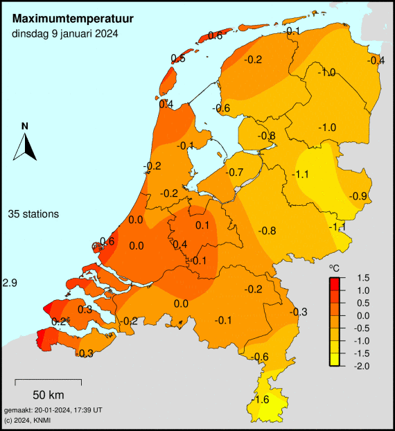 Hoe dan ook op 51-53° NB zijn ijsdagen wereldwijd doodnormaal. Zo ook hier en in de zomer omgekeerd tropische dagen net zo. Beide heb je tenslotte ieder jaar wel.