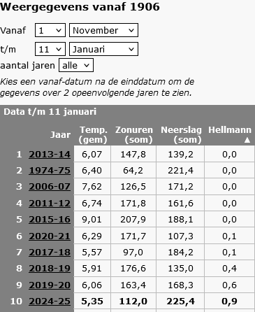 Die site heeft enkele verbeteringen ondergaan, zodat je nu ook het lopende Hellmanngetal kunt zien, en daarbij kun je de tijdsperiode over nieuwjaar heen bepalen, dus in dit geval vanaf 1 november. Of wat je maar kiest.