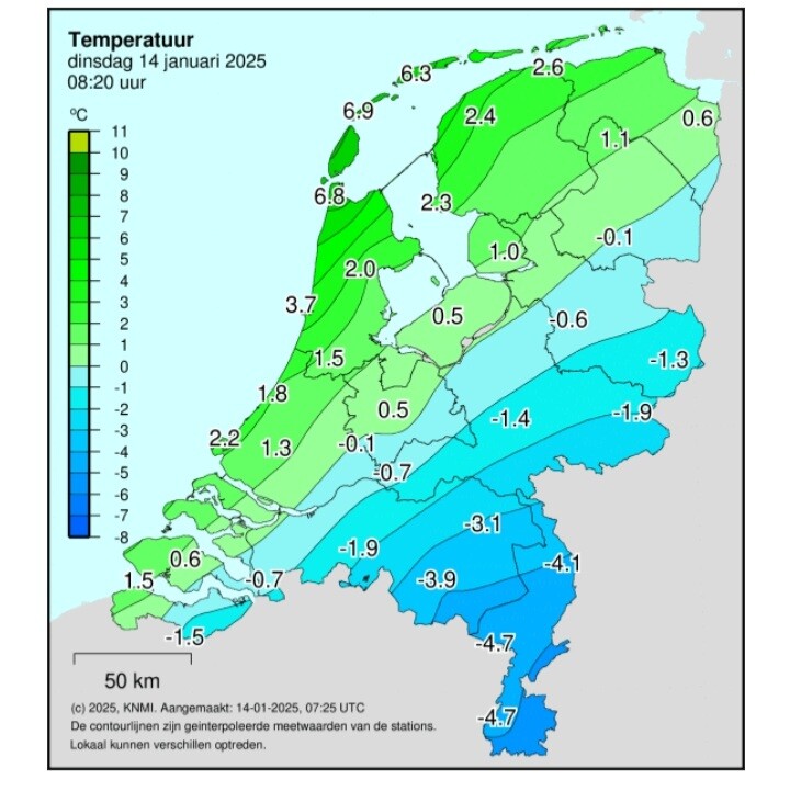 Temperatuur is in NW het hoogste en in het ZO het laagste. Lekker eerlijk verdeeld (kuch kuch)