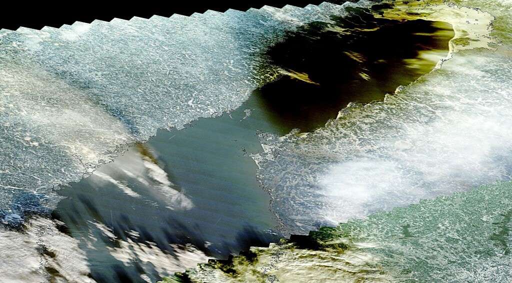 Wanneer deze eindelijk weer vrijkomt voor het maken van satellietbeelden. Dan krijg je de ijsbedekking in beeld.