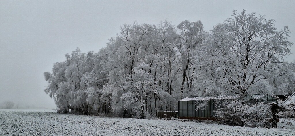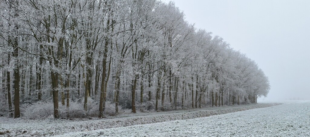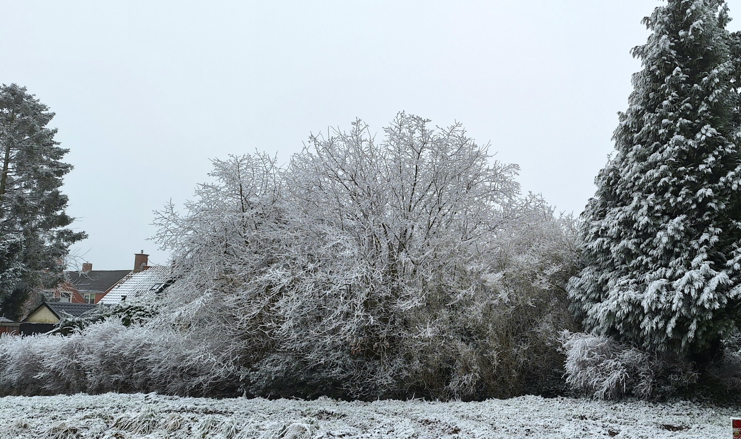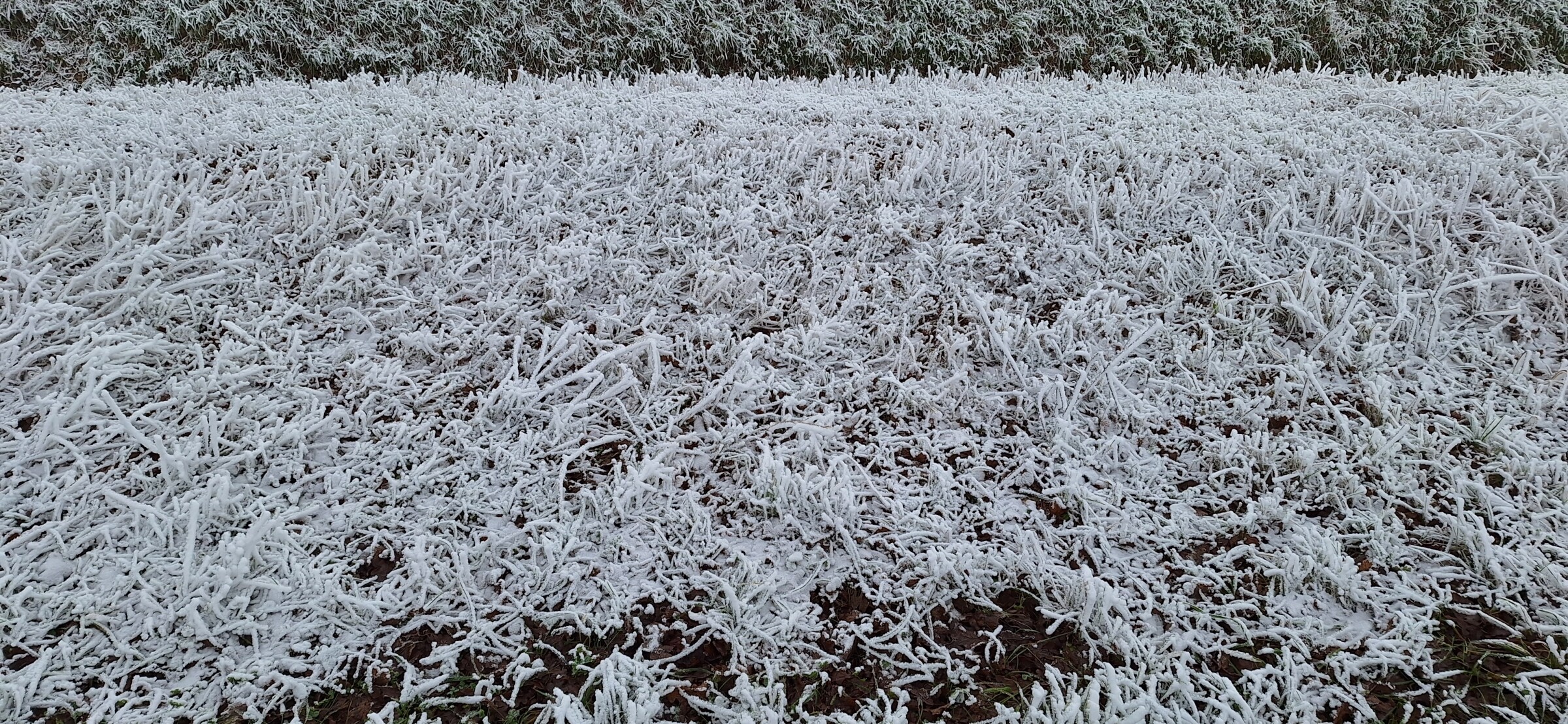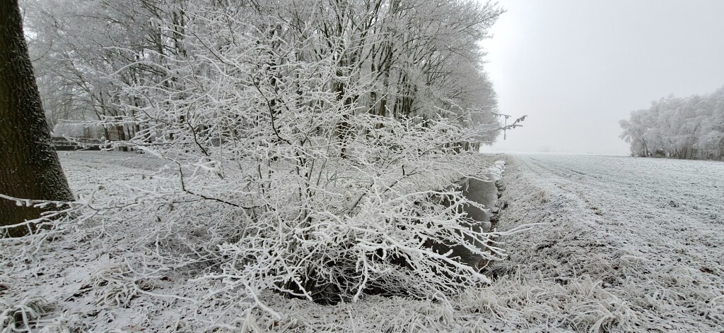 Zojuist tijdens een autorit uithagelende rijp gehad