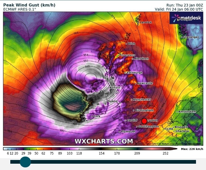 En het Verenigd Koninkrijk. Echt wow! Zo heftig heb ik t nooit gezien. Windstoten van 200-230 km/u aan de kust!! Te bizar voor woorden.