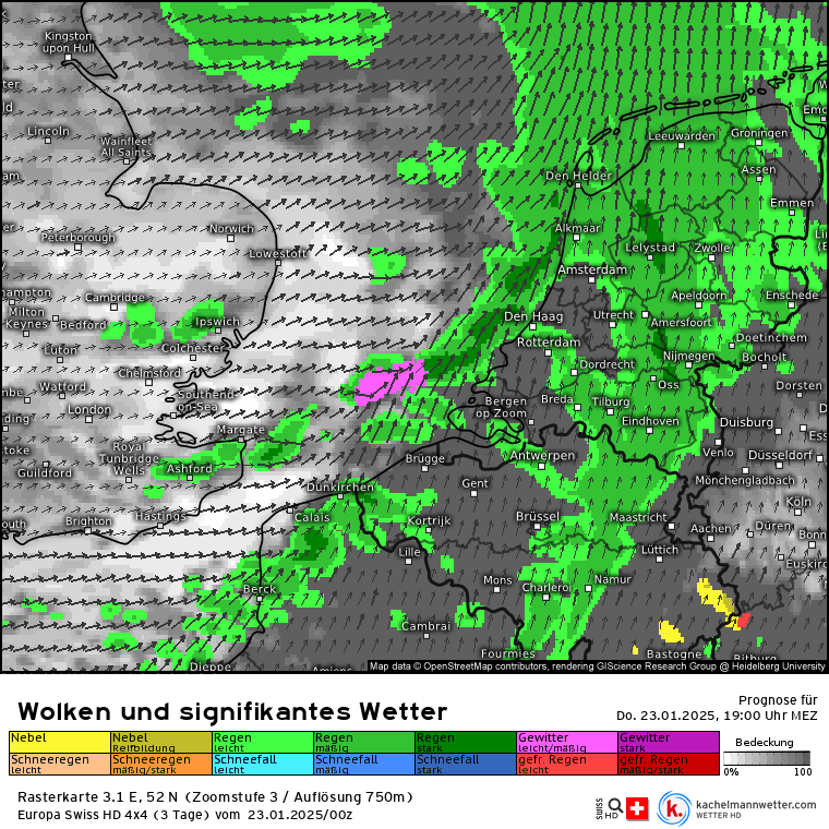 De kleine kans op onweer aan de westkant vanavond zie je bij Swiss-HD. Of misschien ook iets verder naar het noorden.