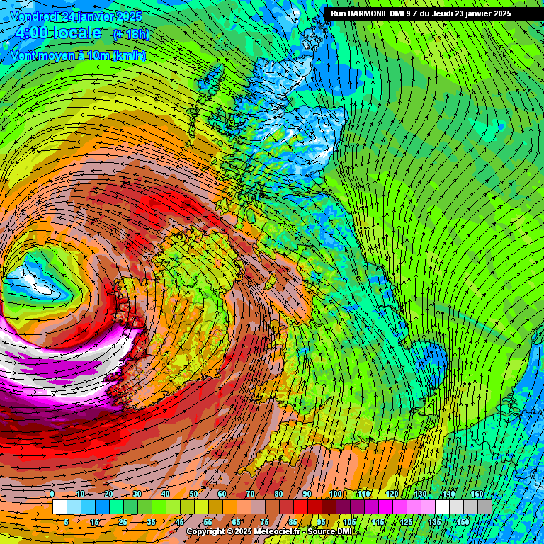 HARMONIE 09z | Storm Éowyn 938 hPa / windstoten tot aan 240 km/h