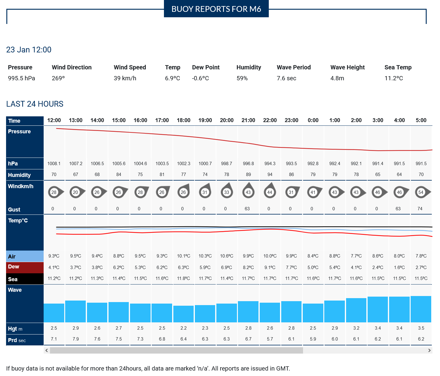 waaronder buoy M6 die ligt een fiks stuk uit de kust vandaan.