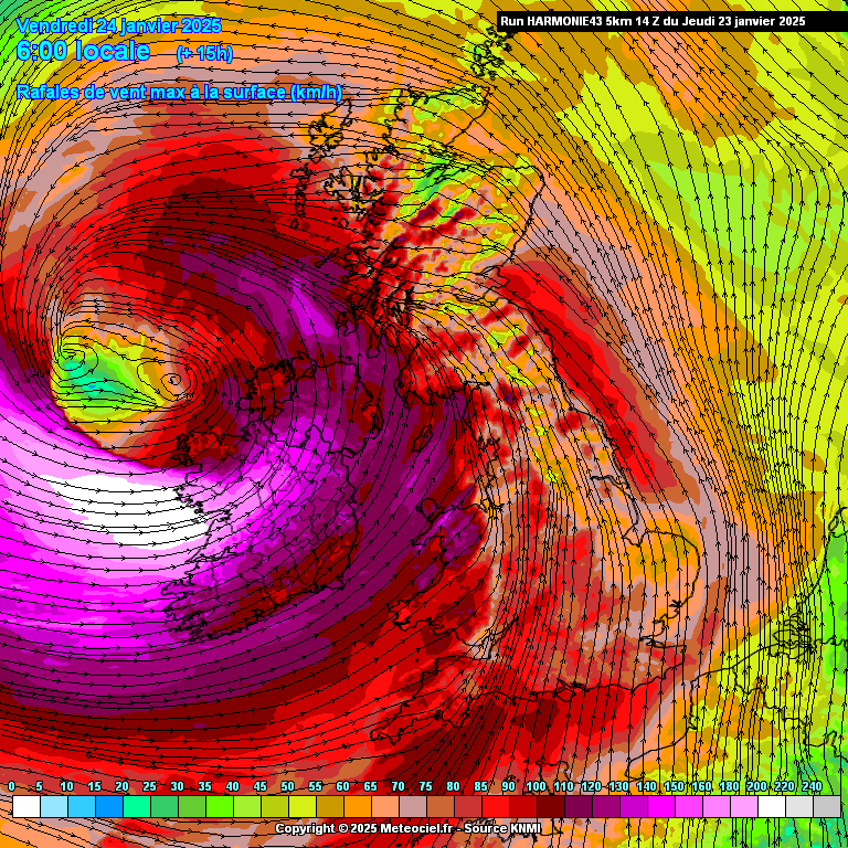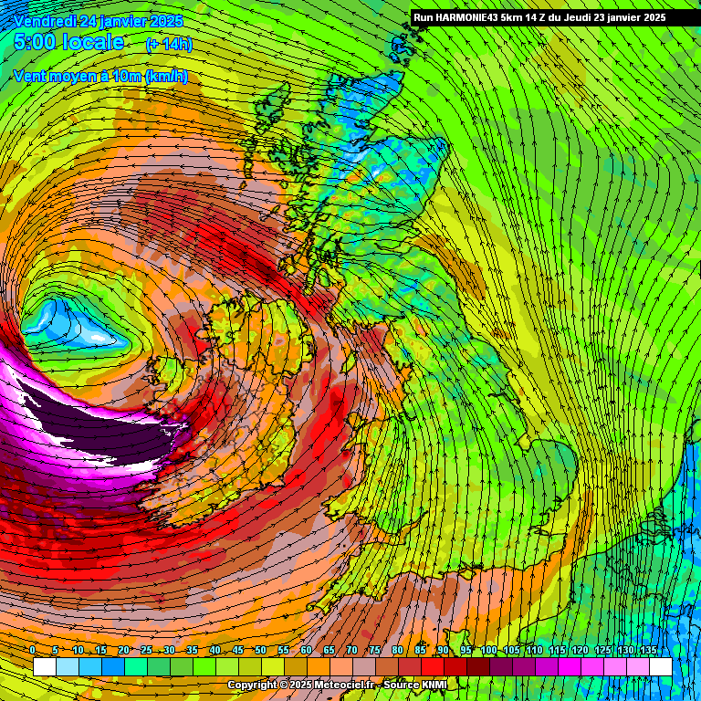 HARMONIE 14z | Storm Éowyn / Zeer groot gebied met windkracht 12