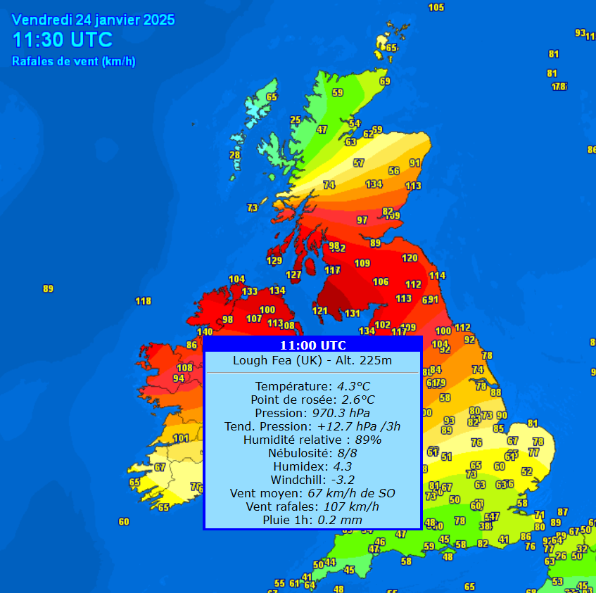 Juist op BBC News gehoord van een Max gust van 114 mi/hr op
