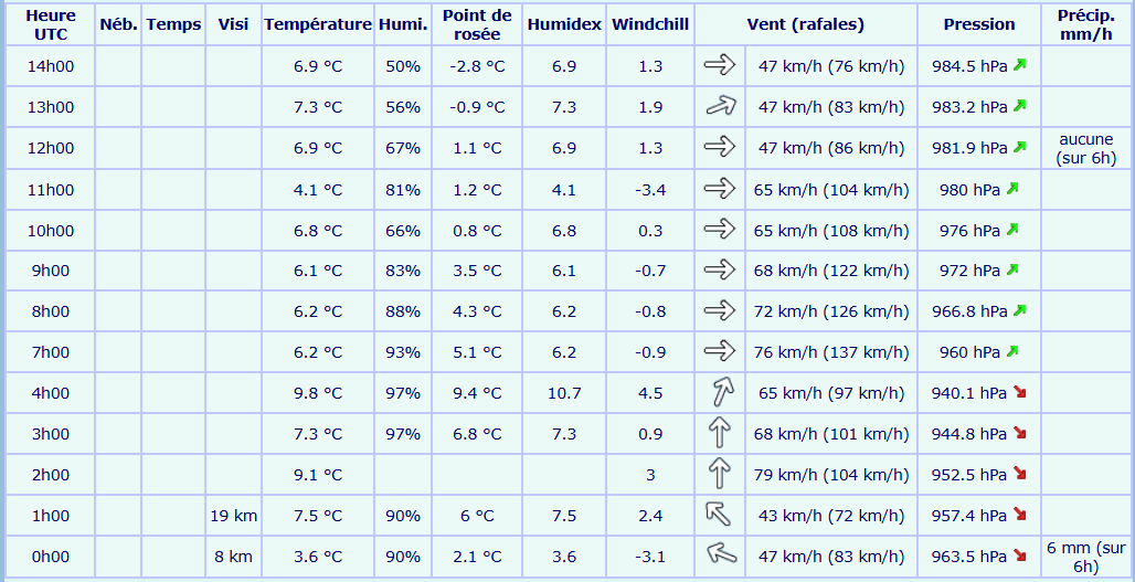 Dit station staat ten noordwesten van Mace Head en moet ook rake klappen gekregen hebben. Maar de metingen van dit station ontbreken tussen 04:00 en 07:00 UTC. Hoewel ik niet denk dat het meer dan 184 km/h geweest zal zijn.