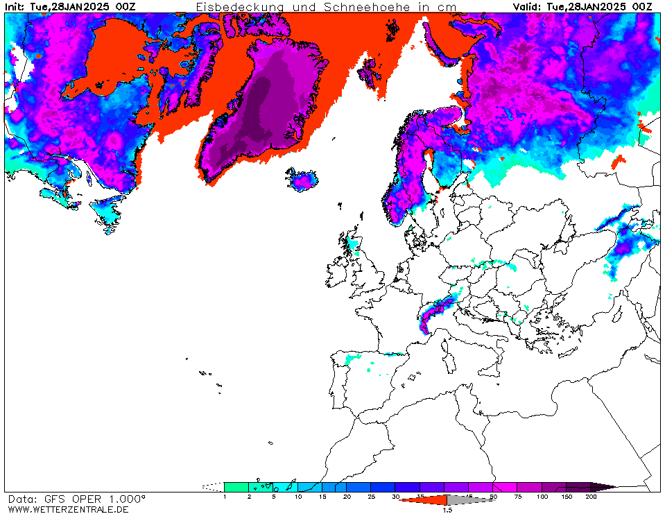 Met uitzondering van Scandinavië en de Alpen maar verder in Europa zo goed als geen sneeuwdek. En dan zitten we nog wel in midwinter momenteel.