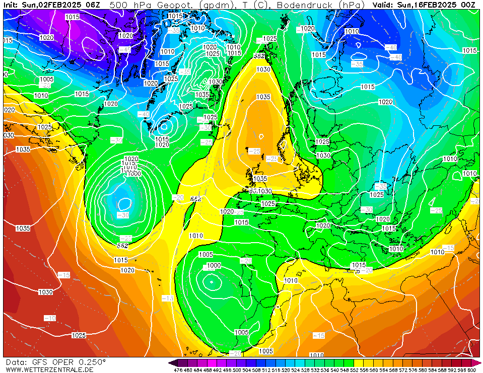 Tx / Tn overzicht (06z GFS oper, 2 februari 2025)