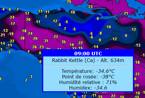 De normalen voor de streken net ten noorden van Rabbit Kettle liggen volgens mij tussen -25 en -30 °C. Dan moet er al zachte lucht van de Beaufort zee binnengedrongen zijn. Maar ik dacht altijd dat die zee bevroren is in de winter.