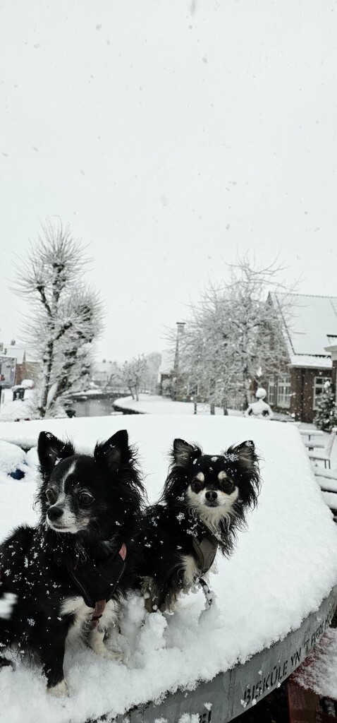 Matige sneeuwval hier, alles is wit😍   ( 854)