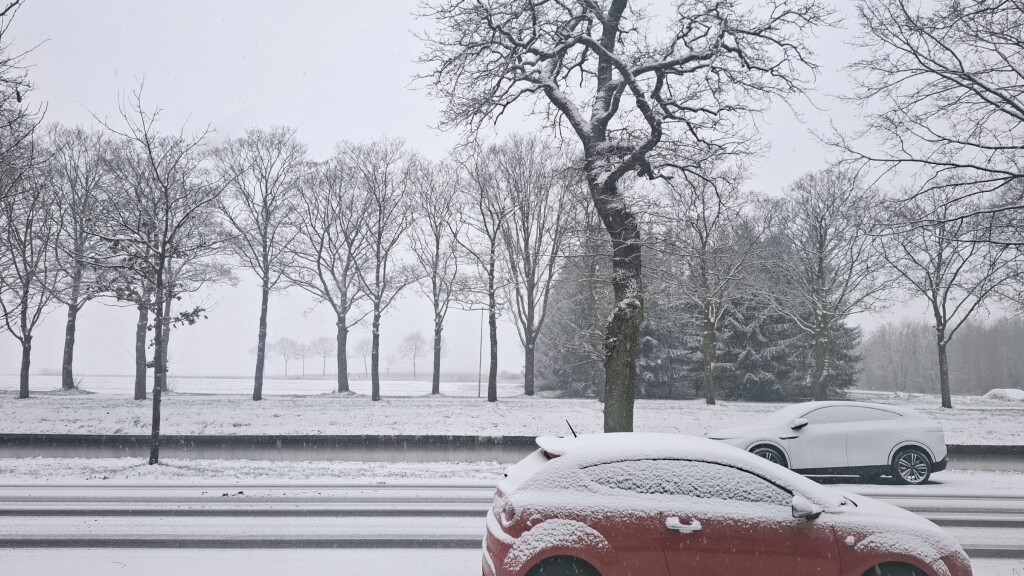 He, eindelijk hier ook sneeuw. Ik voel me helemaal nostalgisch, broodje pindakaas eten bij de kachel en ondertussen kijken naar besneeuwde mensen die voorbij fietsen