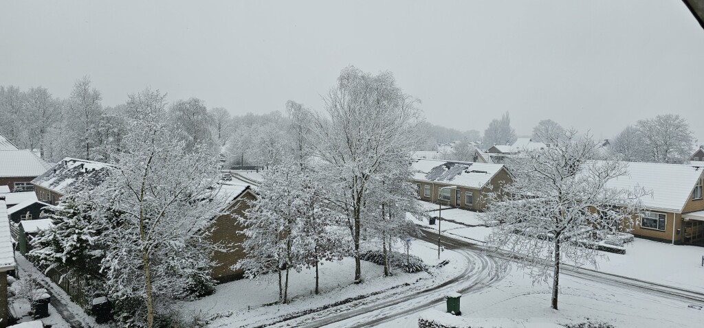 Er ligt aardig wat, en ik zie een donker pitje op de radar wat misschien over ons heen trekt. Misschien zo weer matige sneeuwval?