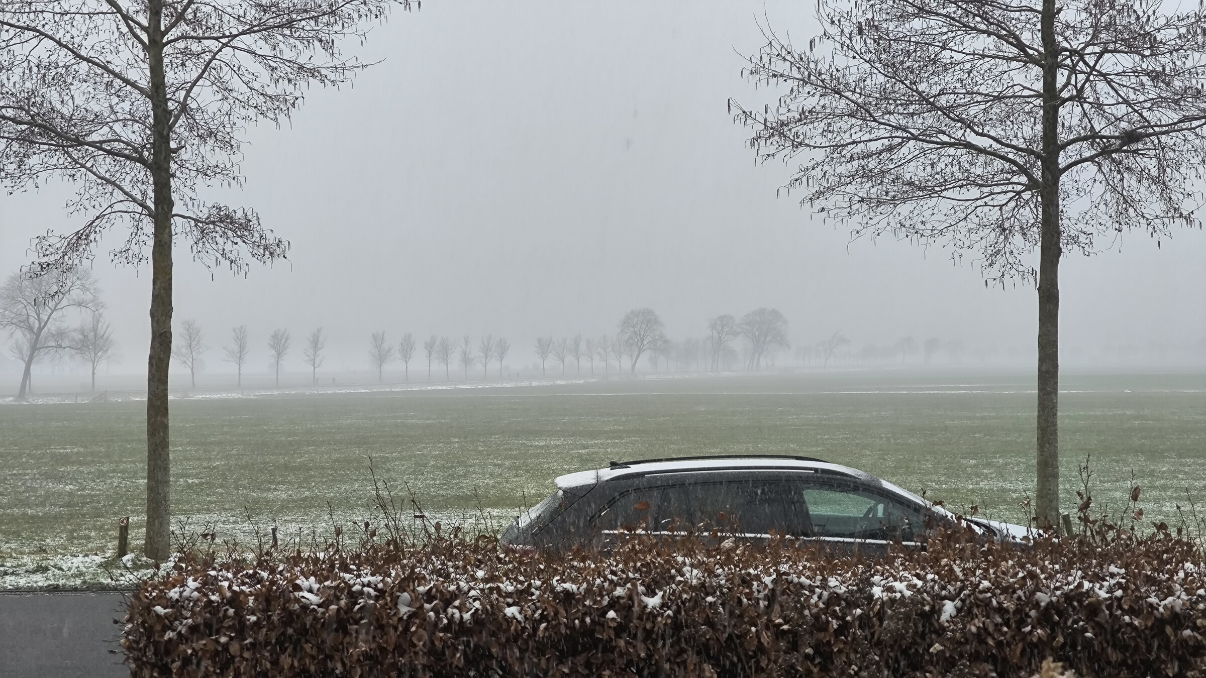 Wat lichte (korrel)sneeuw laatste kwartier (Groningen zuidwest)