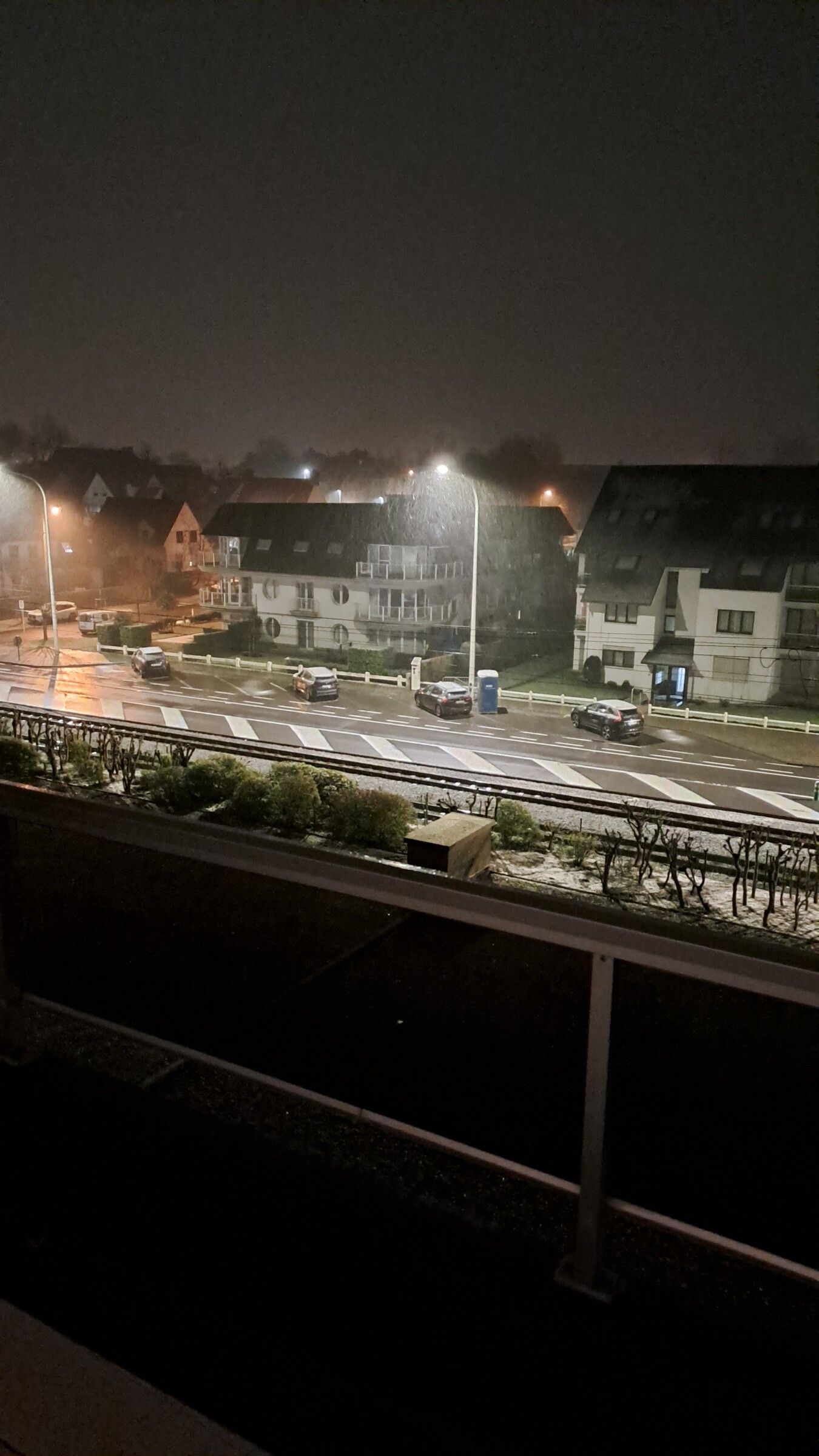 Na wat zeer lichte motsneeuw nu wat echte vlokjes.