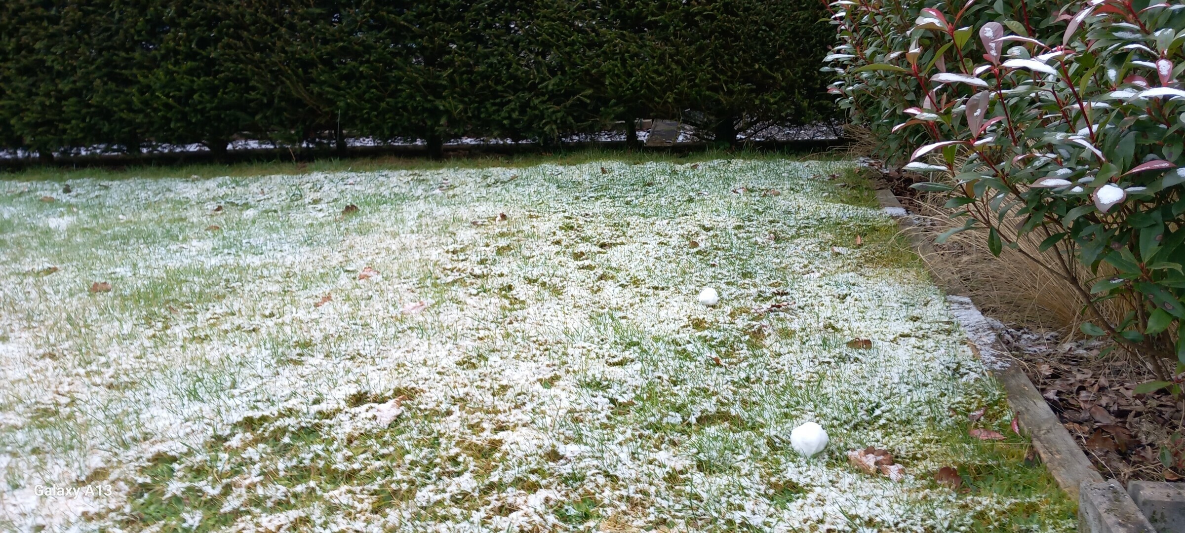 . Ook nu nog af en toe enkele vlokjes. Toch opmerkelijk hoe dat sneeuwgebiedje, tegen dat hef hier aankwam grotendeels oploste. Zie enkele foto's, ook van mn zeldzame sneeuwballen van deze winter