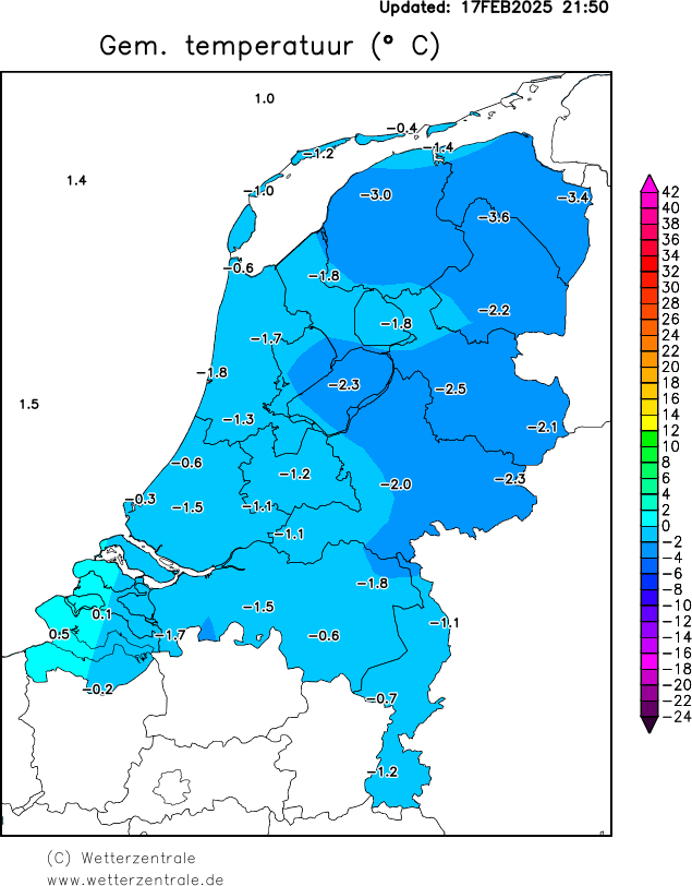 Eelde lijkt richting een gemiddelde van -4 te gaan, serieus winterweer. (het is er nu ca. -5, grastemperatuur inmiddels -12)