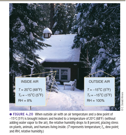 Stel: je vult nu het hele huis met Wageningse buitenlucht (temperatuur -2, dauwpunt -8). Daarna zet je de kachel op 21 en voeg je geen vocht meer toe. Dan zou de RV dalen tot slechts 13%! Onderstaand een voorbeeld hoe zoiets werkt.