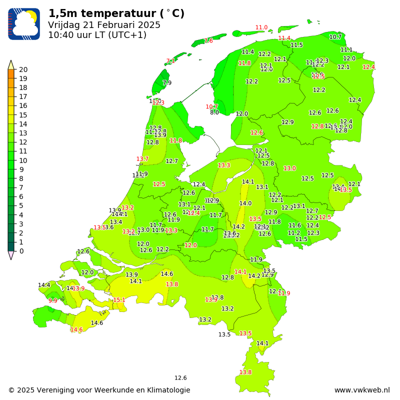 Hier nu warmste dag van de winter. Tact: 12,6°C.