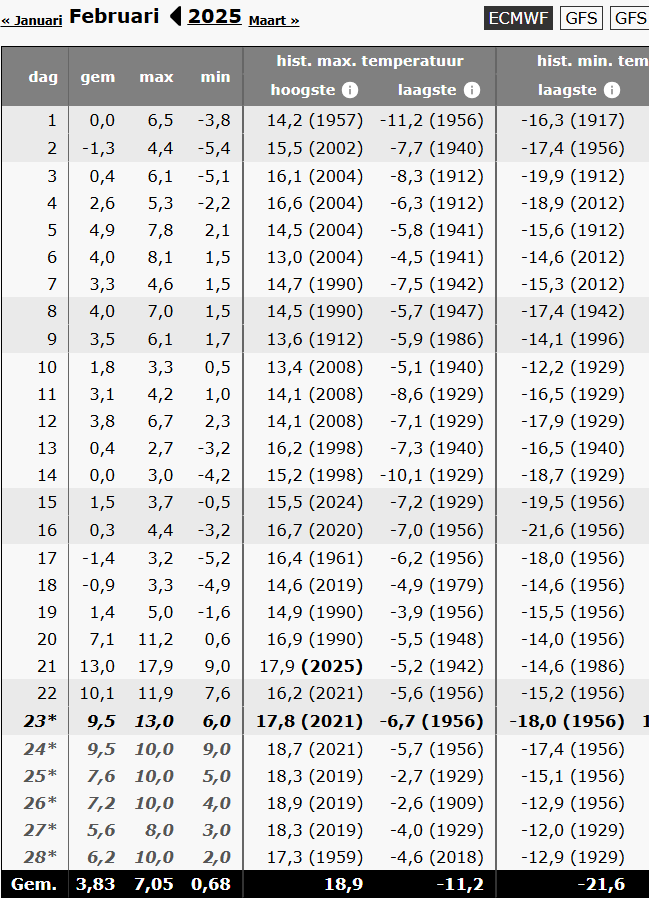 Je ziet vaak dat de records in clusters komen. 1956 komt veel voor in de lijst van februari.