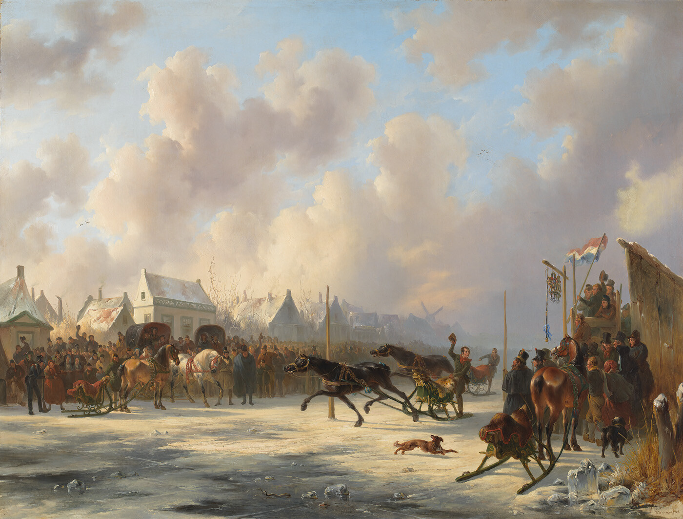 27 januari 1838. We zien hier het paard Koningin als eerste over de finish komen van een wedstrijd te Zaandam.