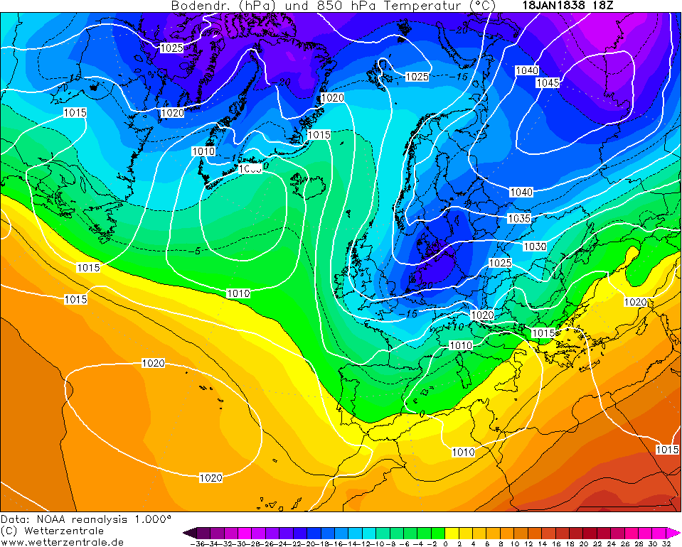 Sinds de reanalysis op WZ teruggaan tot 1836 is het wel leuk om enkelen tegen het licht te houden. Als je de kaarten van 19 januari 1838 bekijkt kun je nog wel voorstellen dat dit een Tmax/Tmin van -16,6/-19,6 opleverde. Een bel met zeer koude lucht bereikte ons in een toch al zeer koude maand.