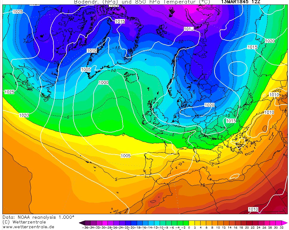 Die arctische kou zit wel in de aanvoerrichting, tot -20 op 850 hPa in de brongebieden. Dat kan allicht een vijftal graden kouder zijn geweest, helemaal de scherpte van deze eeuw kun je niet van deze reanalyse verwachten. Desondanks vind ik het een hele aanwinst, omdat het grotere plaatje getoond wordt en je niet in ongewisheid hierover blijft.