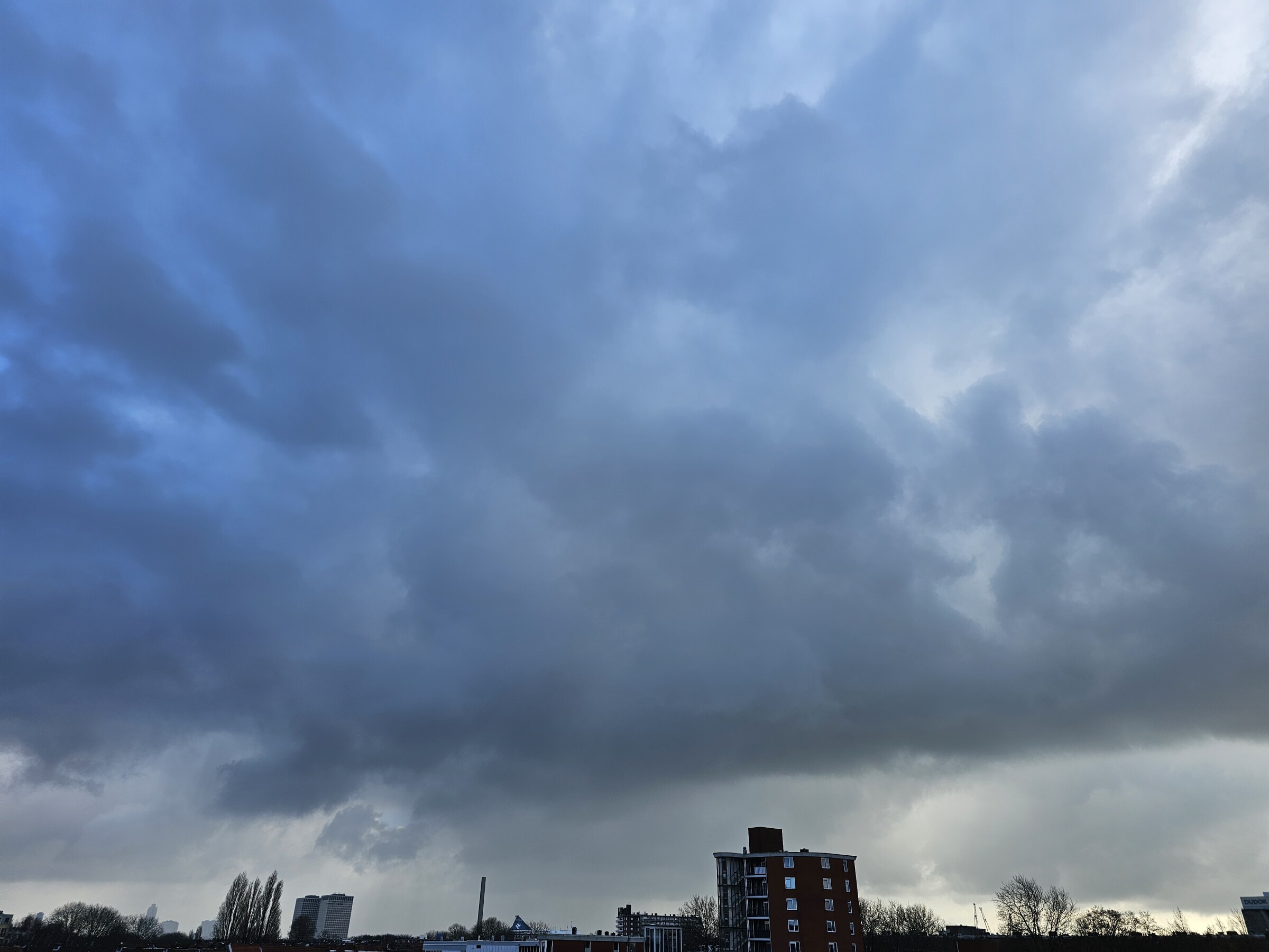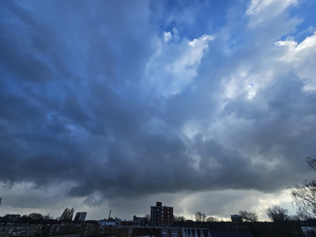 Nu komt de zon erdoorheen, maar net nog een buitje met zelfs wat korrelhagel erbij gehad, iets dat gisteren niet voorkwam, het epicentrum van het buitje leek of over de gemeentegrens van Rotterdam of net west van Rotterdam te trekken
