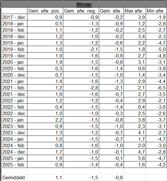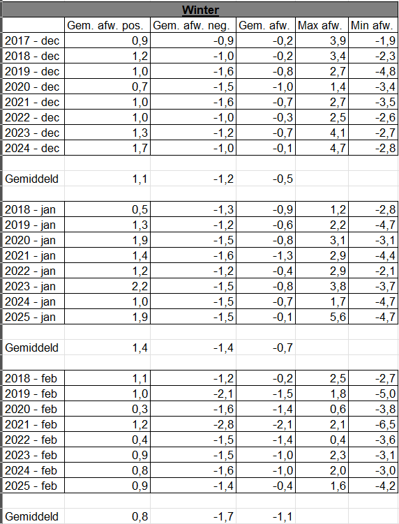 Overzicht gerangschikt per seizoen (winter in dit geval)