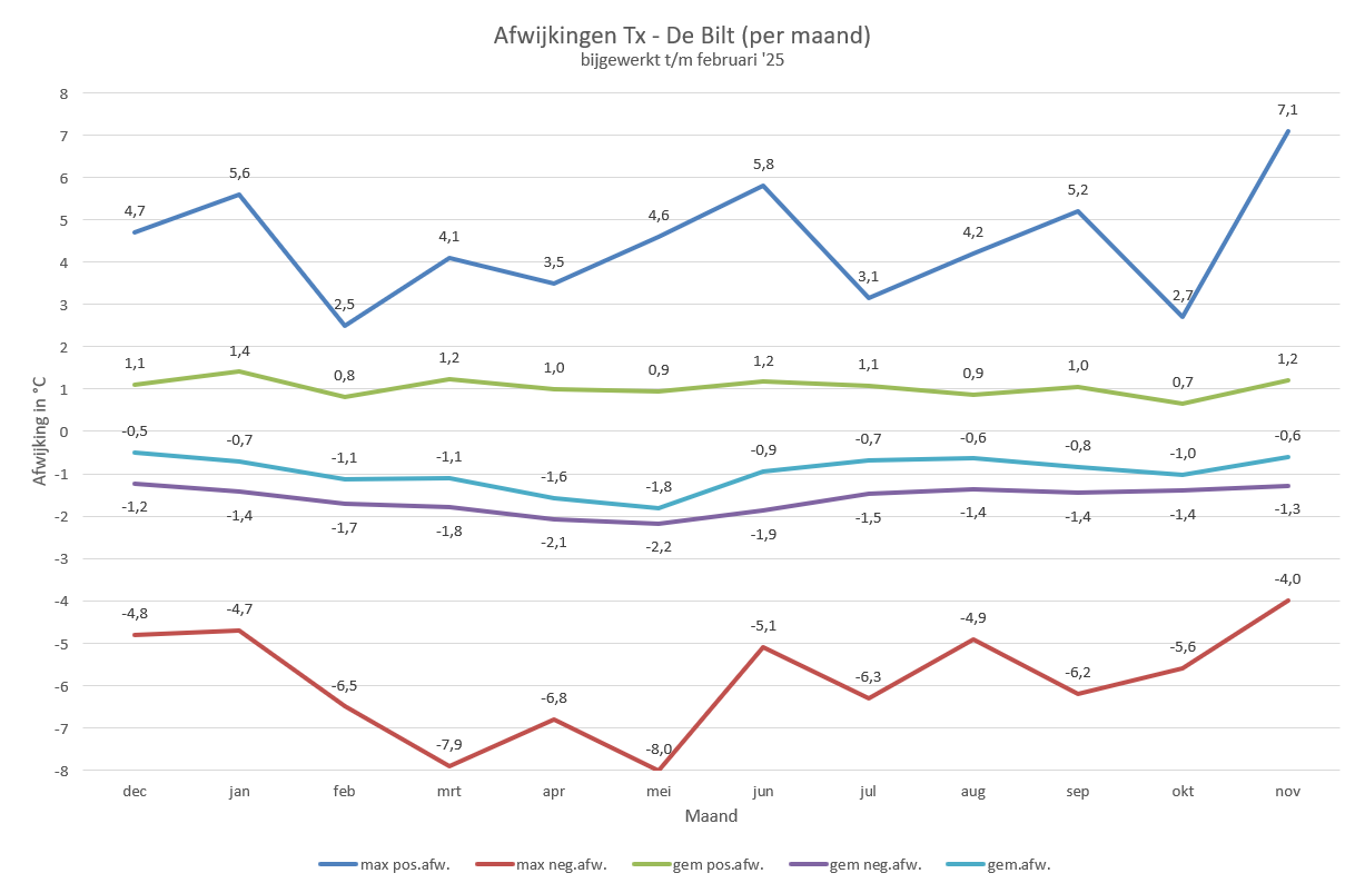 Overzicht alle Tx gerelateerde afwijkingen per maand.