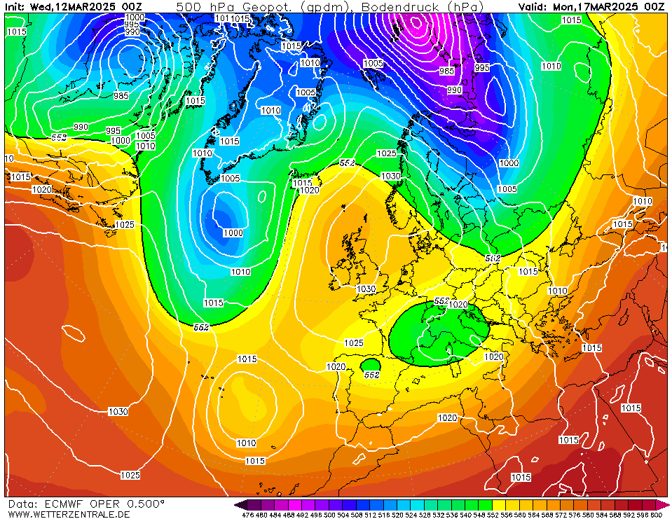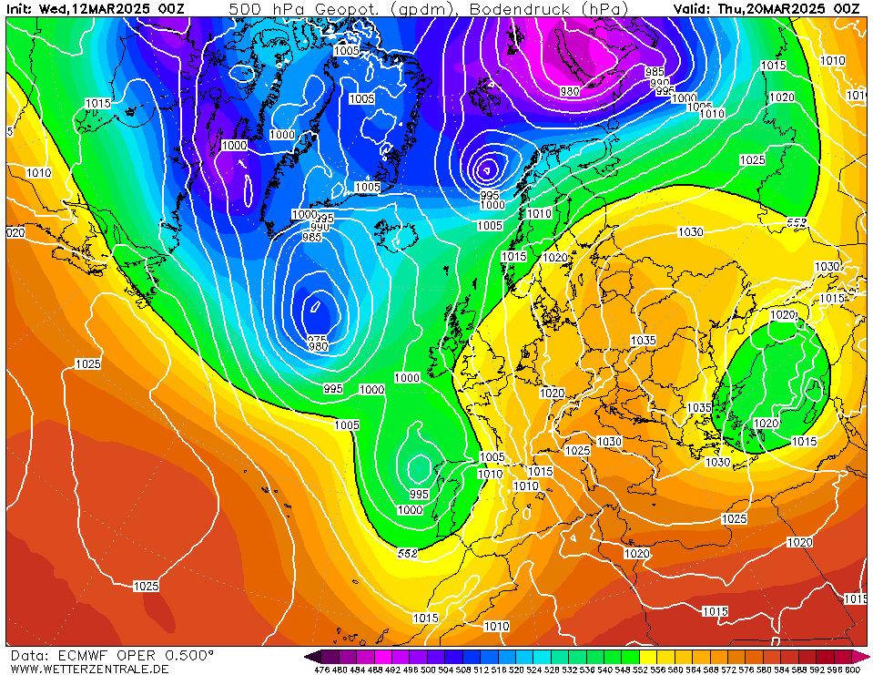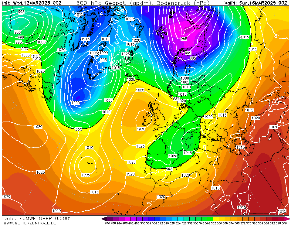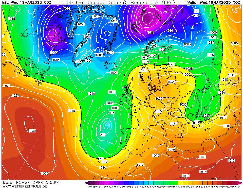 Aan het eind van de verwachtingsperiode lijkt het uit te draaien op een zuidwestelijke stroming. Het is maar even de vraag in hoeverre actievere storingen ons kunnen bereiken.