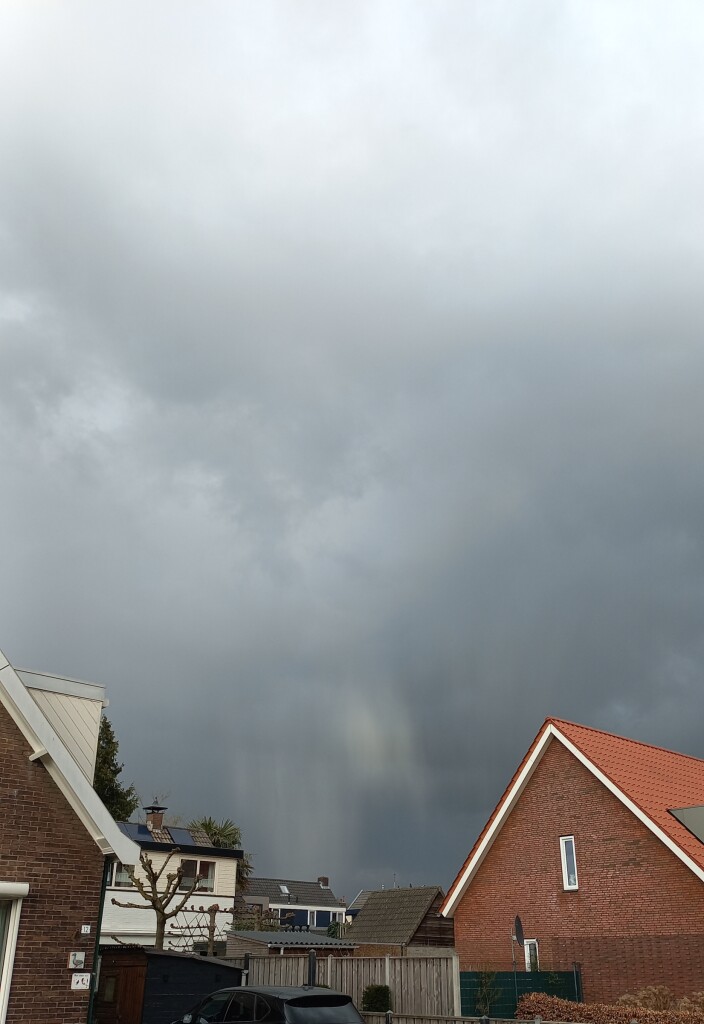 Heb dit zoveel liever dan een strakblauwe lucht zoals tijdens de zeer zachte periode van afgelopen week(end). In alle vier de seizoenen kan ik dit weer beter waarderen dan dat. Opmerkelijk is dat de neerslagteller nog steeds op 0,0mm staat voor vandaag. Kennelijk was de bui niet groot genoeg in omvang en ging het vlak langs ons huis.