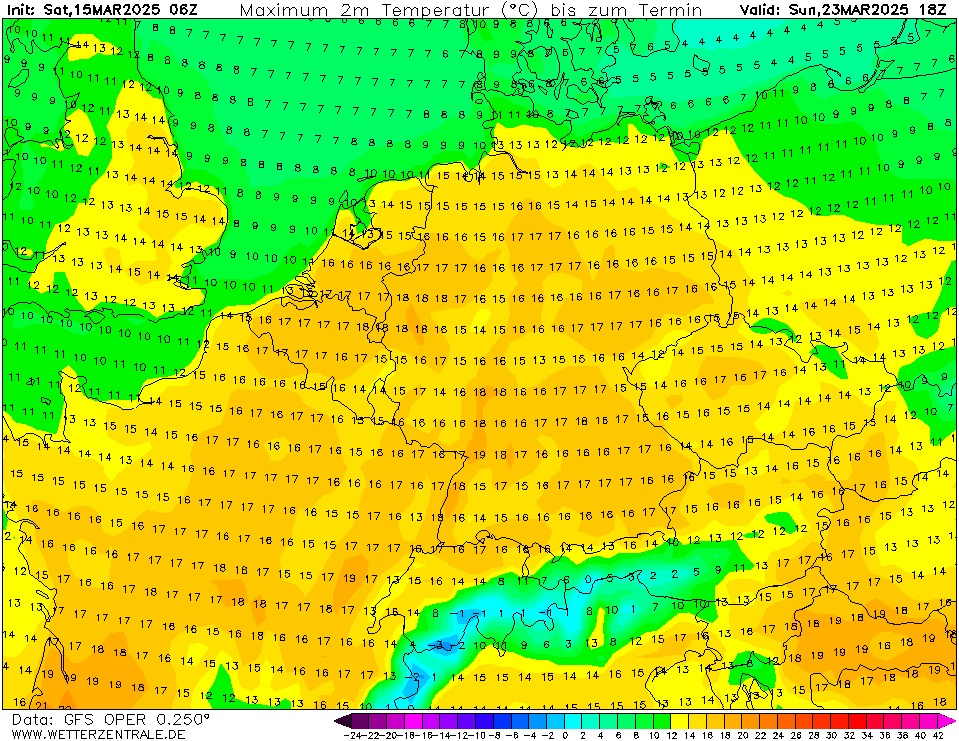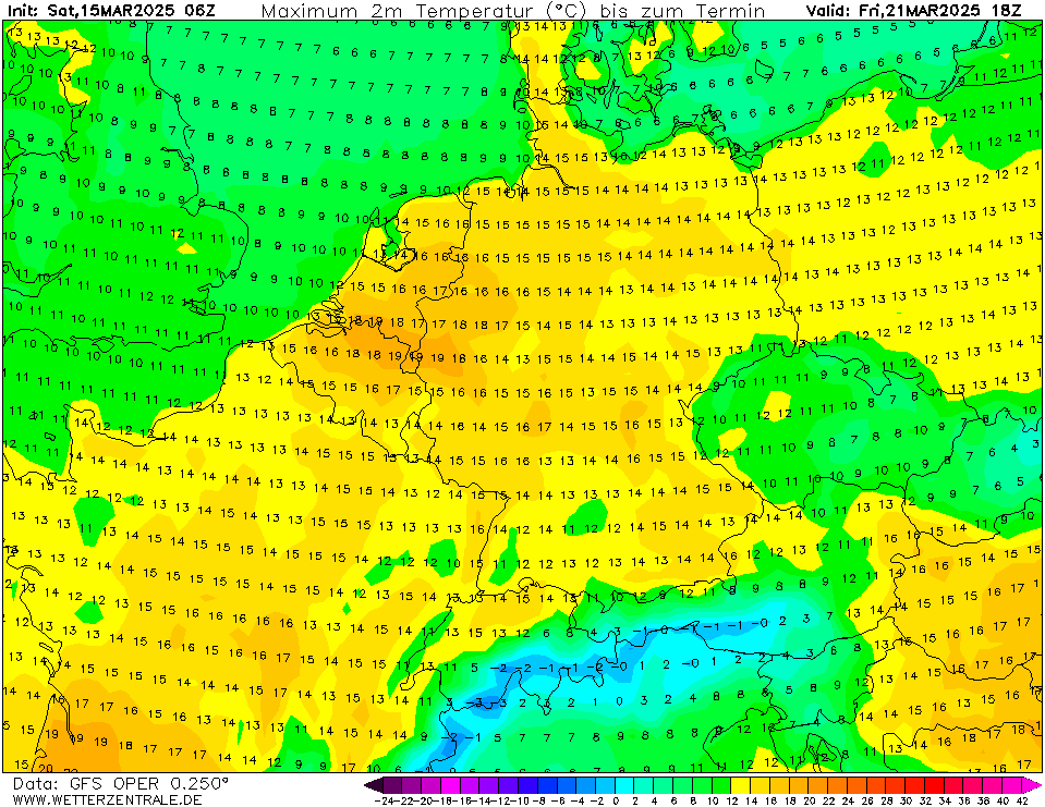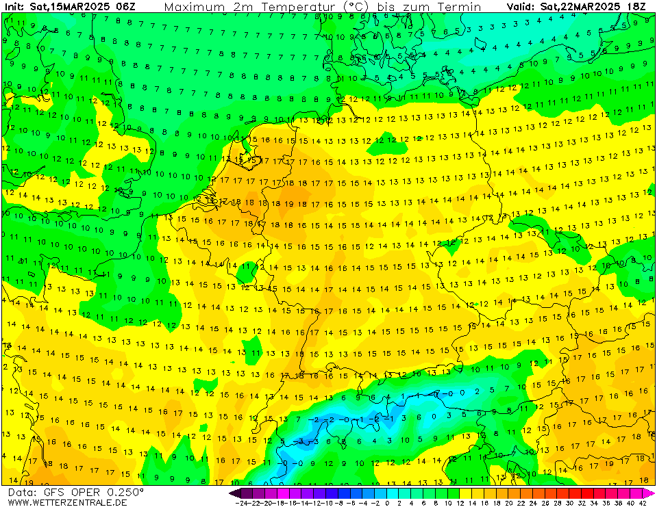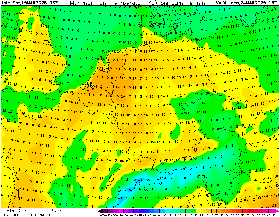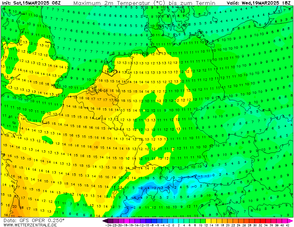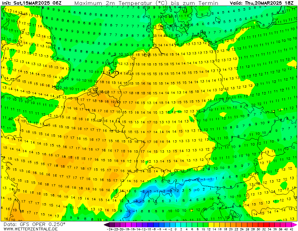 Een paar dagen terug lieten verschillende modelruns van diverse modellen al vanaf vrijdag beduidend lagere temperaturen zien, bij GFS is dat pas vanaf volgende week dinsdag. Tot die tijd 'gewoon' weer 6 dagen met meer dan 15 graden in De Bilt, soms zelfs eerder richting de 20 graden. Tijdens de vorige 'lentegolf' hebben we ook al 6 dagen met 15+ graden gehad. Normaal telt maart er 3 à 4.