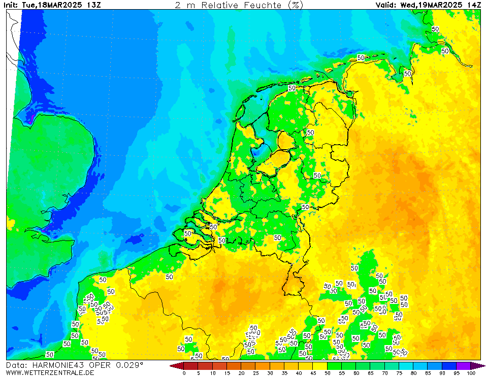 Harmonie geeft bijvoorbeeld wel de RH als uitvoer, in tegenstelling tot enkel Ta/Td zoals veel modellen. Bijvoorbeeld te zien op WZ: