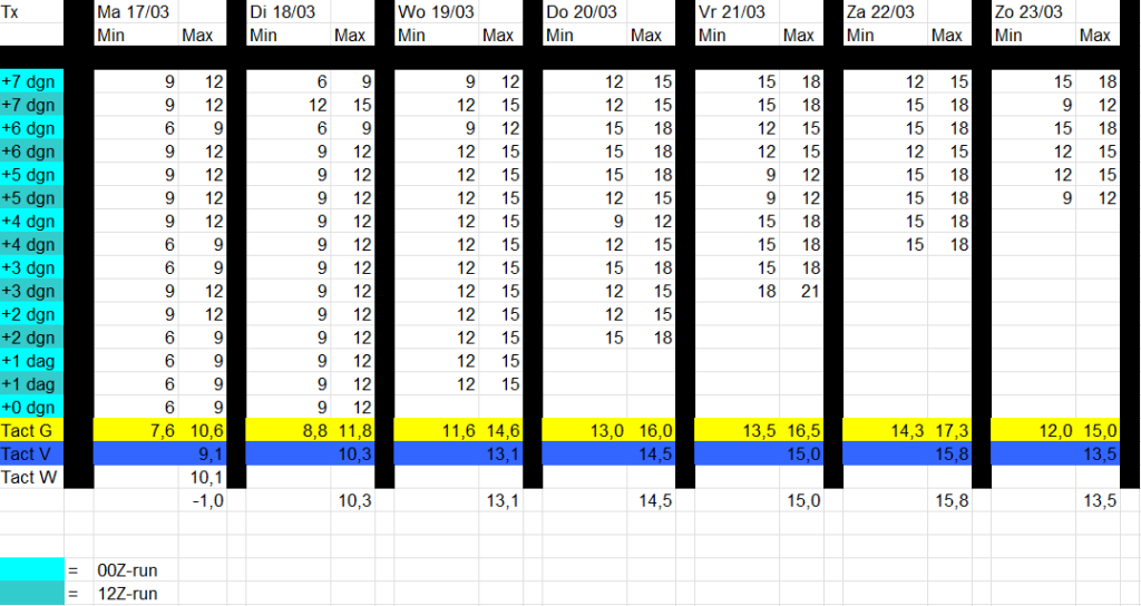 De uitvoer van GFS1812 is de warmste tot op heden met 18-21.