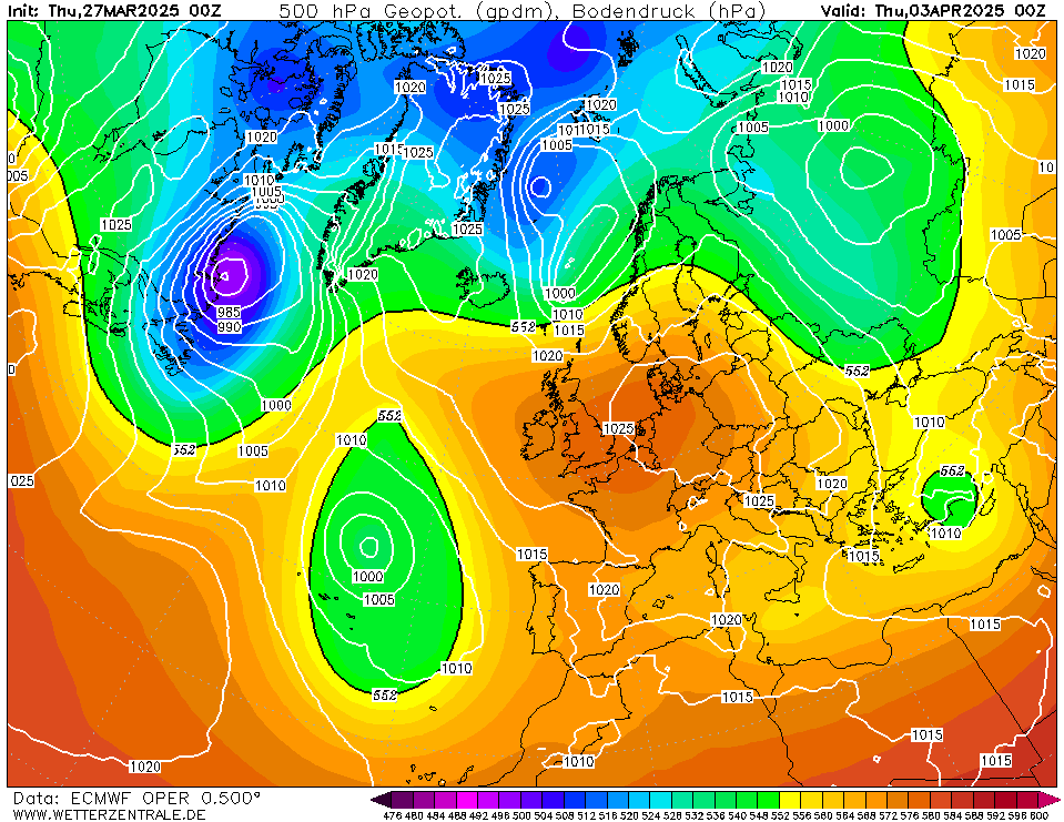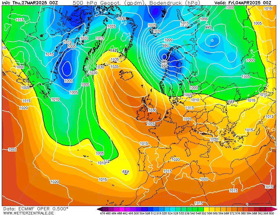 Edit; ik zie het al, het hoog bij Duitsland gaat een verbinding aan met een klein hoogje dat al bij IJsland ligt, de brug/rug is er al op 168u. Ik moet even van Oost naar West kijken op deze kaart en dat gebeurt zo weinig dat ik het mijzelf heb afgeleerd