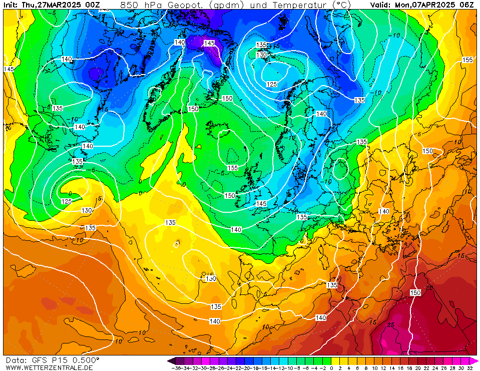 Met een diepe CA-stroming en waarbij de -15 op 850 hpa tegen het NO van Nederland schurkt. Met weerbril op: prachtig, zonder weerbril: beetje teveel voor de reeds ontluikende natuur.