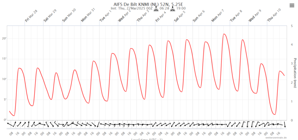 Pluim Zuid-Nederland tikt 3 dagen (bijna) de 20 graden aan.