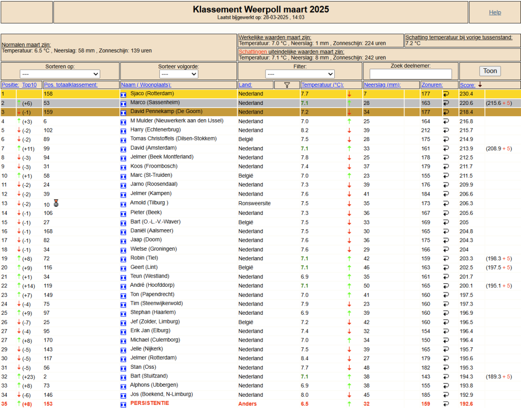 Tussenstand Weerpoll mrt '25 t/m 27-03