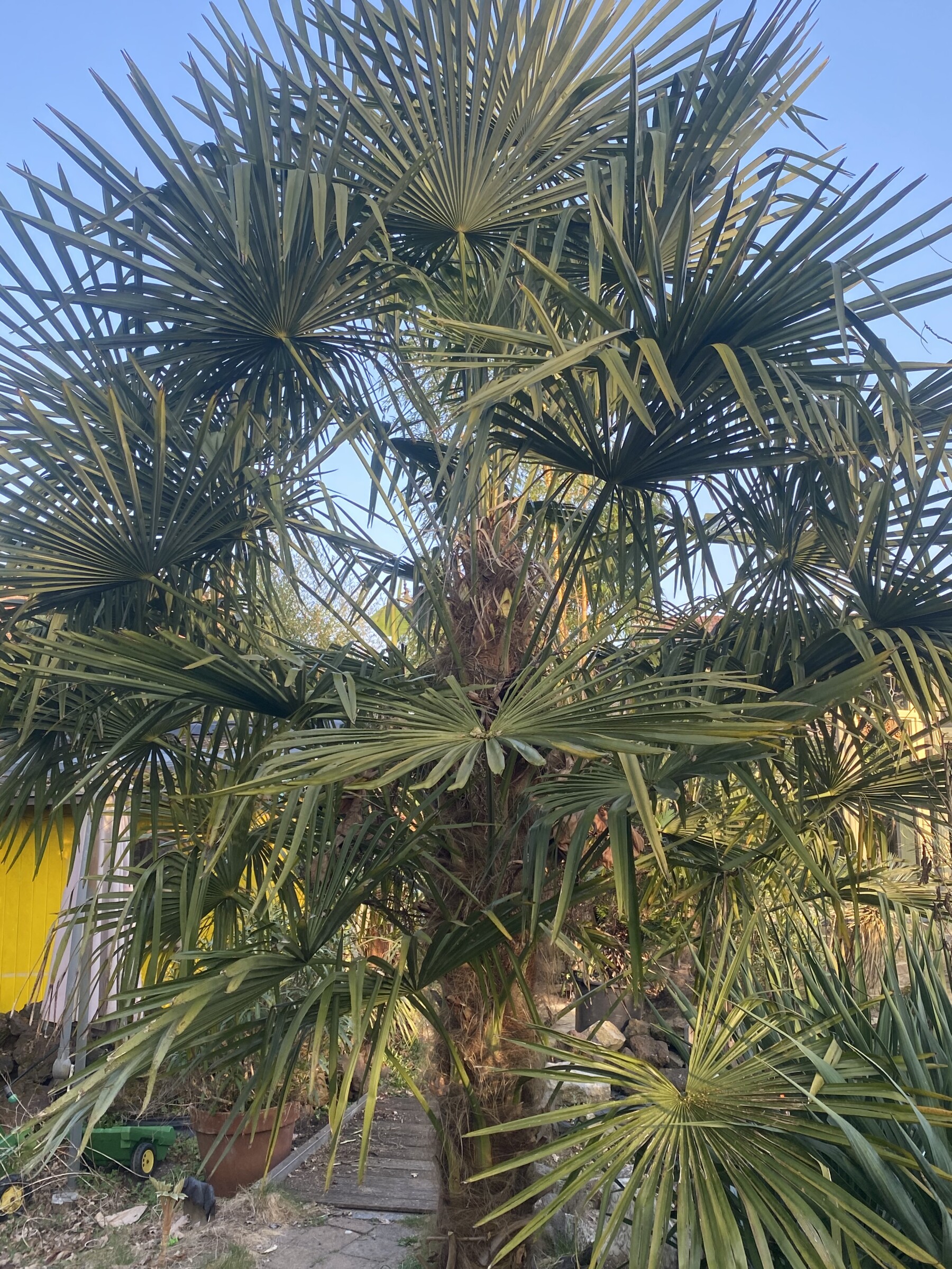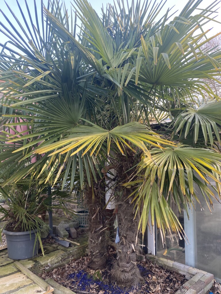 Loopt wel los. Ze worden weer mooi groen. Onderste bladeren kun je af knippen als ze verdorren. Trachycarpi houden van nattige en vrij koele condities. In Schotland doen ze het meer dan uitstekend. Echte krachtpatsers die ook nog heel veel kou kunnen lijden tot -18 en grotere exemplaren nog lager. Ik geniet intens van hoe hard ze in mijn tuin groeien. Sommige bijna een halve meter per jaar!