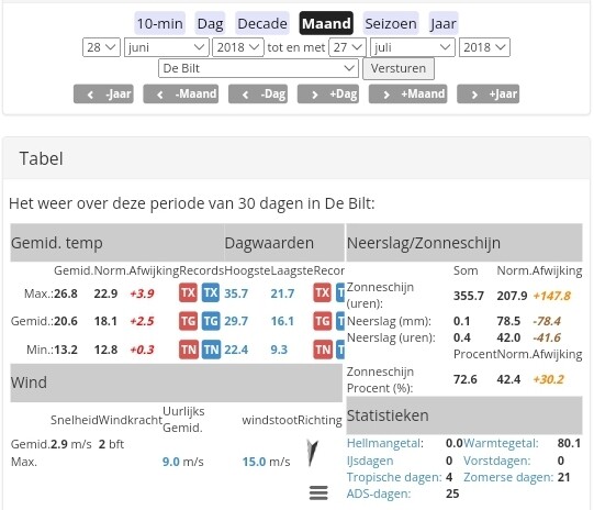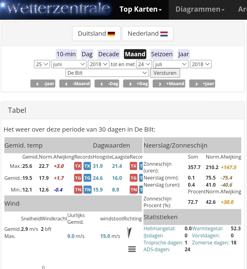 Neerslagsom en zonneschijnduur. Maandrecord neerslag komt er aan