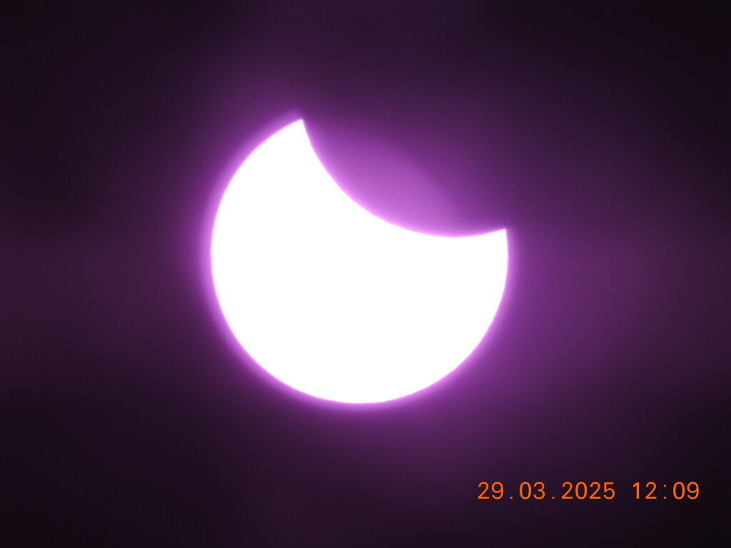 Maximum gedeeltelijke zonsverduistering (24%) - Gouda - zaterdag 29 maart 2025 - 12.09.15 uur / Zonshoogte: 40,95° / Azimut: 168.00°