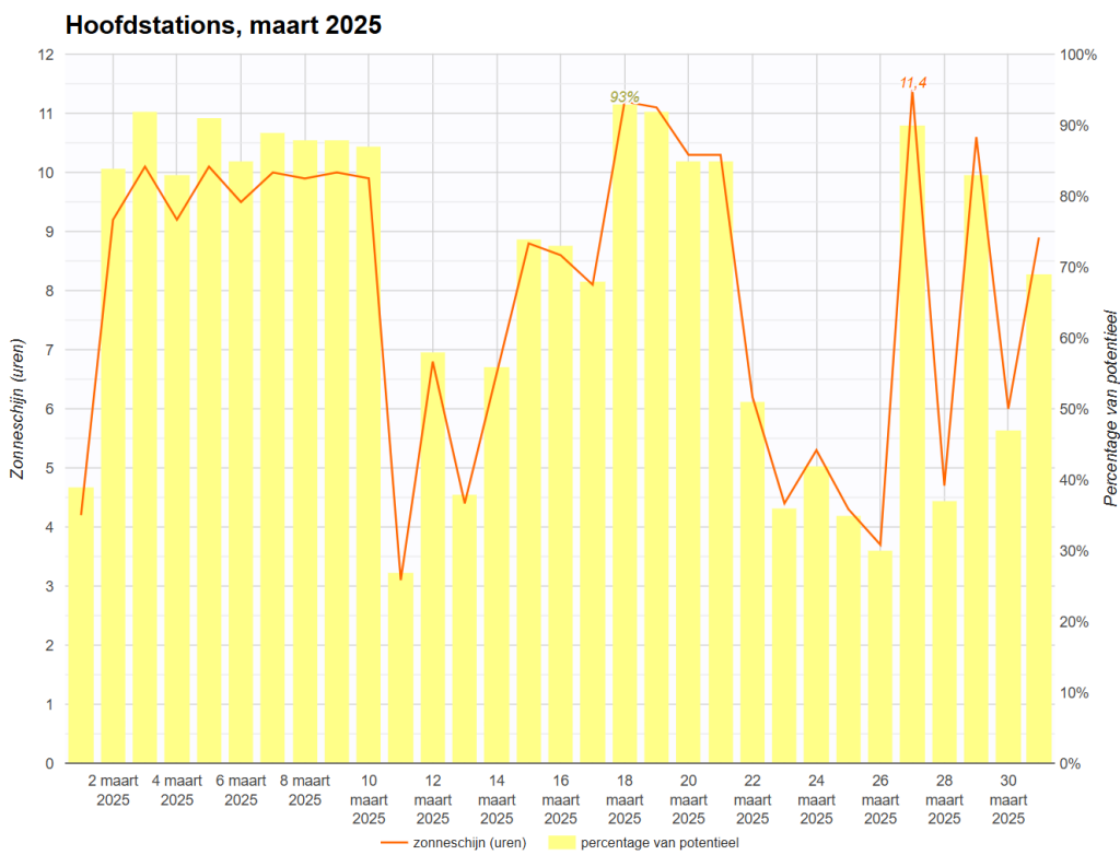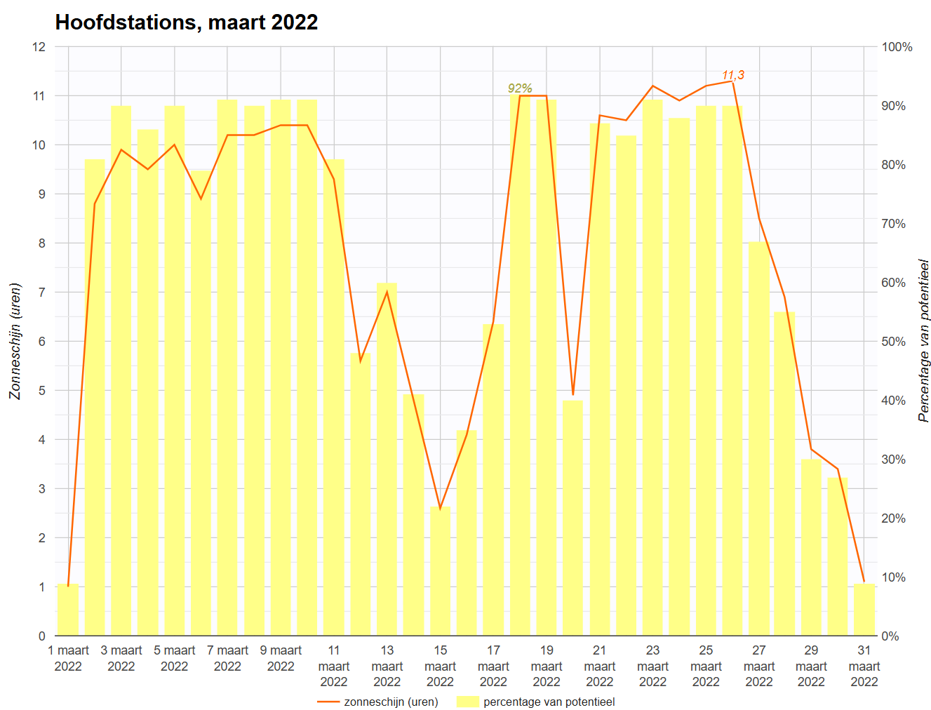 Twee minst zonnige dagen maart 2025 vs. maart 2022