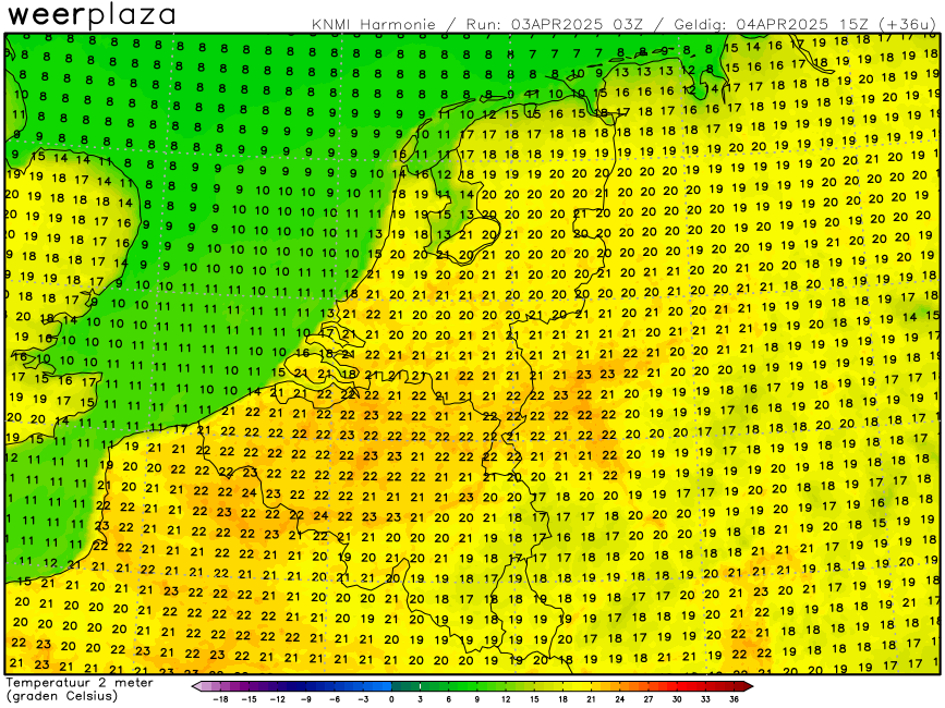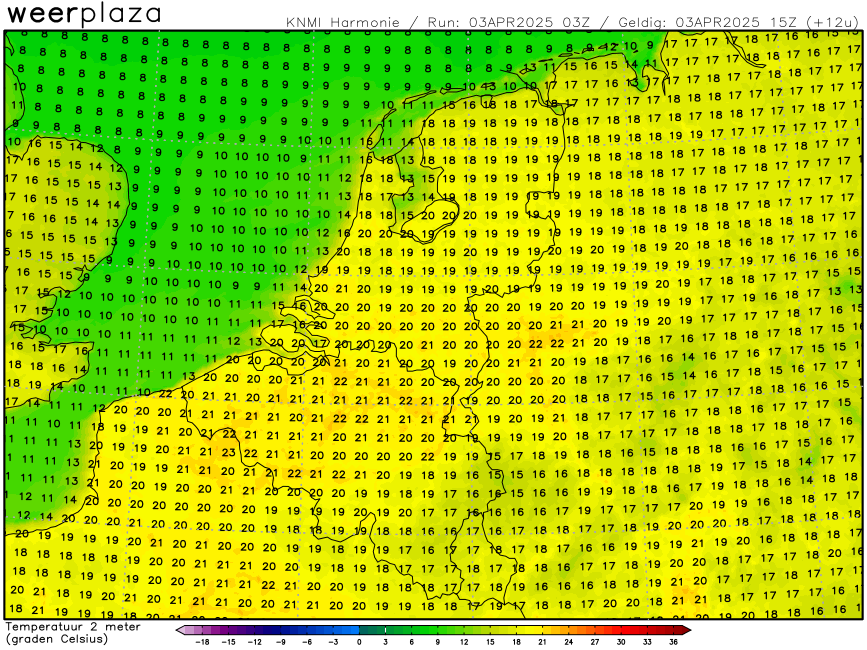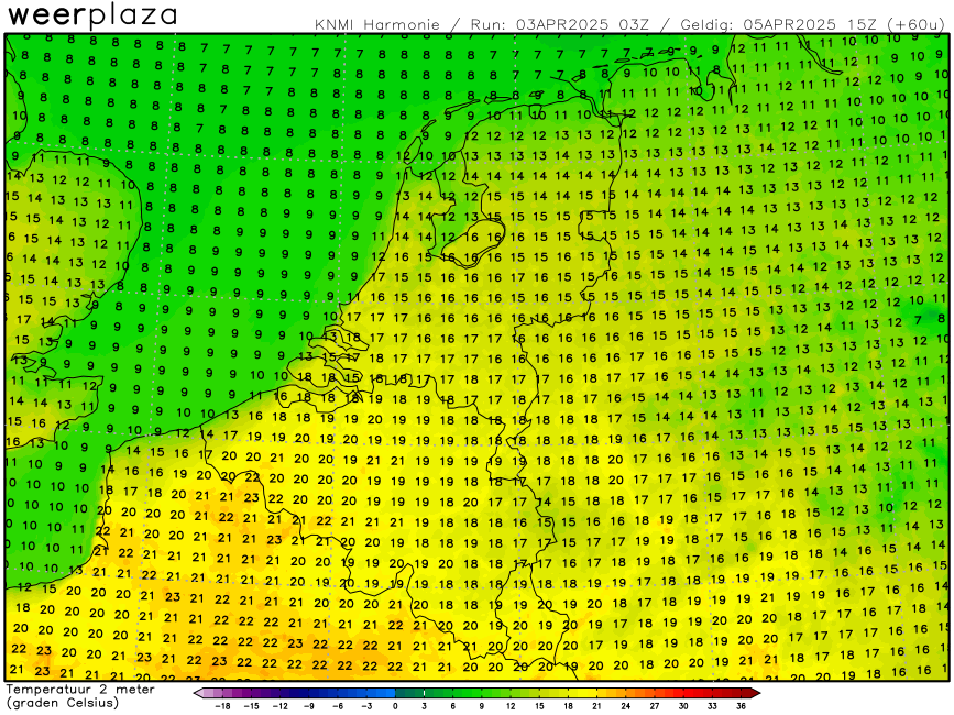 Op basis van Harmonie vandaag de warmste dag in N-NL. Noordcomponent?