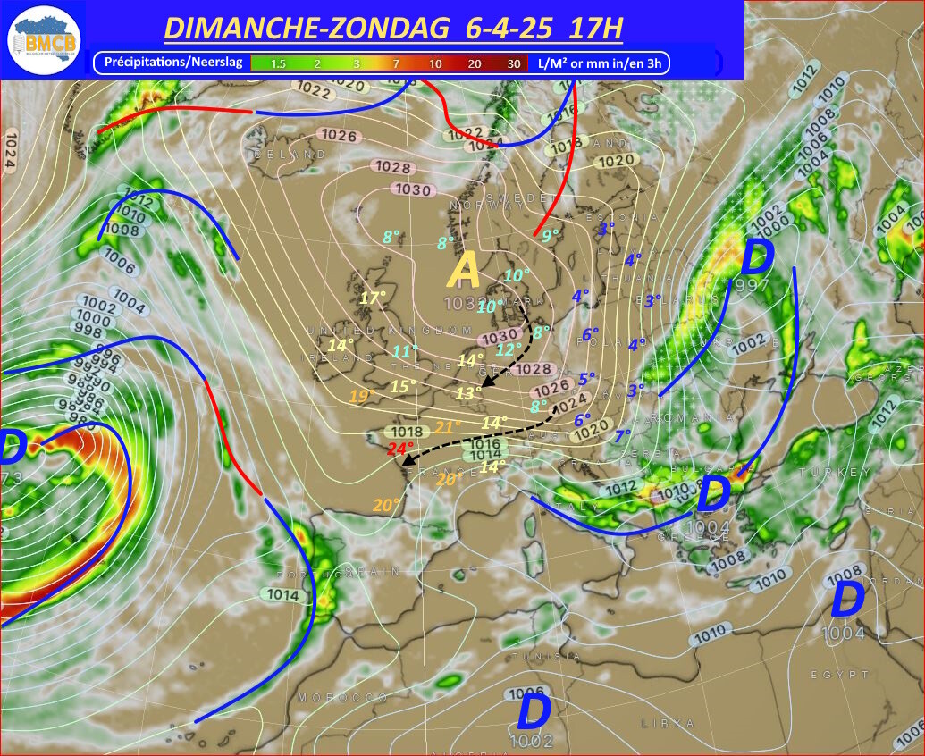Pendant ce temps, de l'air plus froid circulera le long de son flanc oriental, s'écoulant sur la Scandinavie avant de plonger vers l'Europe centrale et le nord des Balkans. Cet air plus frais atteindra également nos régions à partir de dimanche, tout en conservant un caractère très sec.