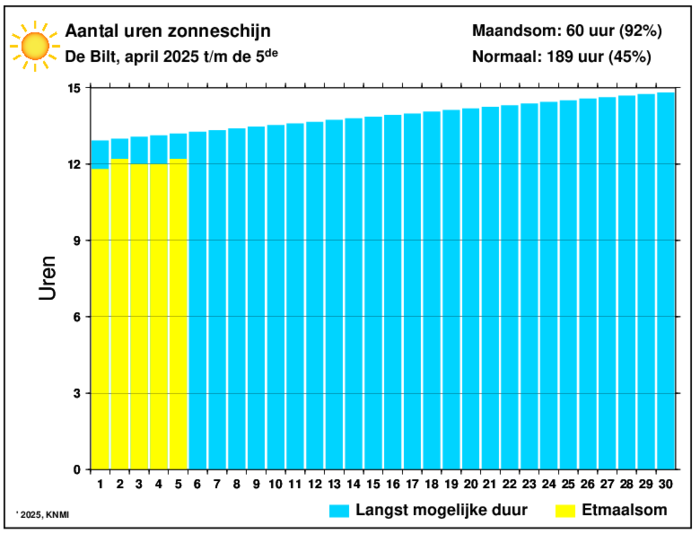 Aangezien de zon deze maand elke dag nog van opkomst tot en met ondergang geschenen heeft. Ondanks dat de huidige meetmethode altijd 7-9% van de dag bij laagstaande zon mist.