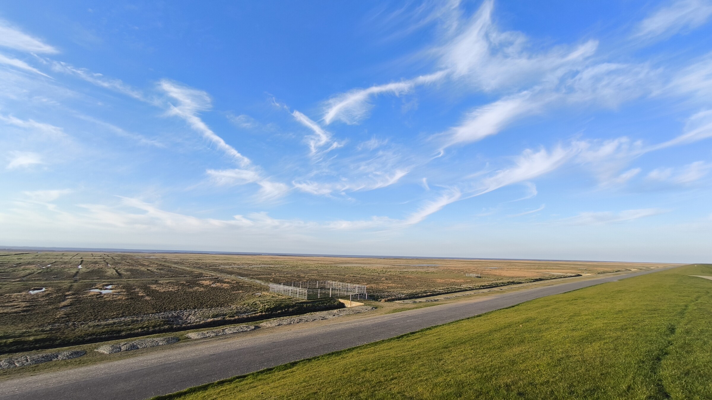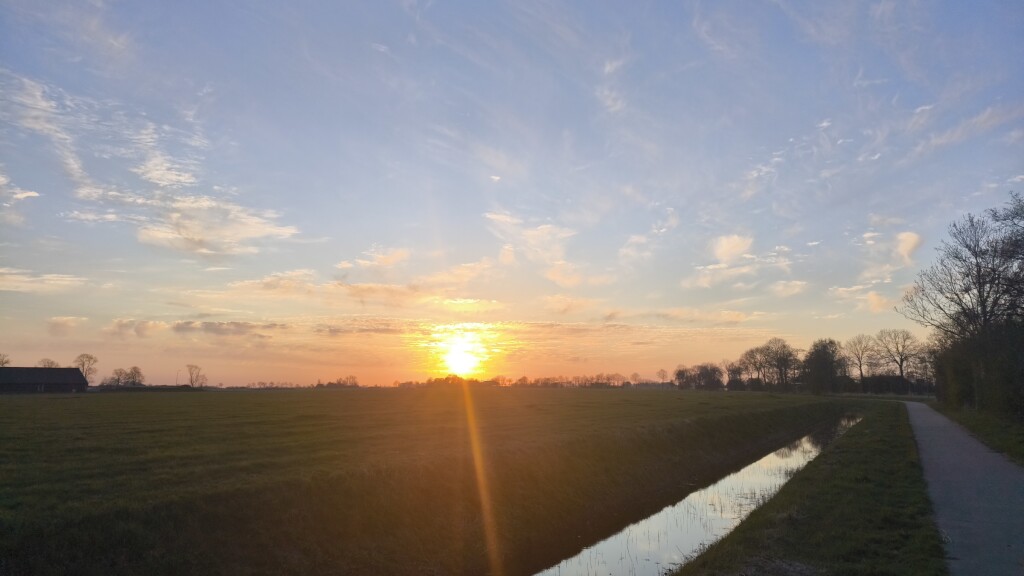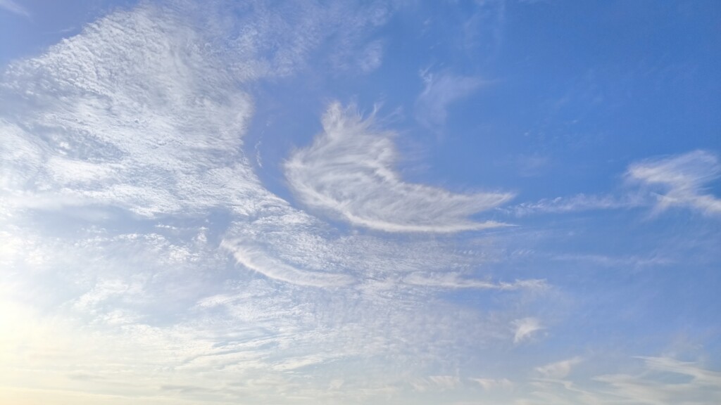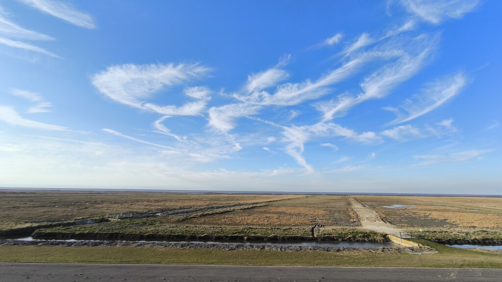 De vele vliegbewegingen van de internationale luchtmachtoefeningen laten bizarre contrails achter. Contrails die uitsmeren tot schitterende windveren. Daartussen nog enkele fallstreak holes of pilotengaten. Mooie maar koude avond aan de Noordkust.