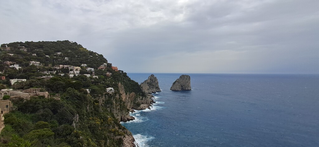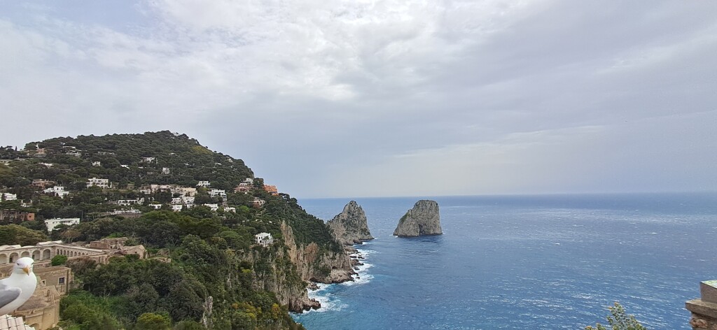 Veel wind, bewolkt en licht gedruppel. T ongeveer 18° schat ik. Laatste foto is vanuit Sorrento.