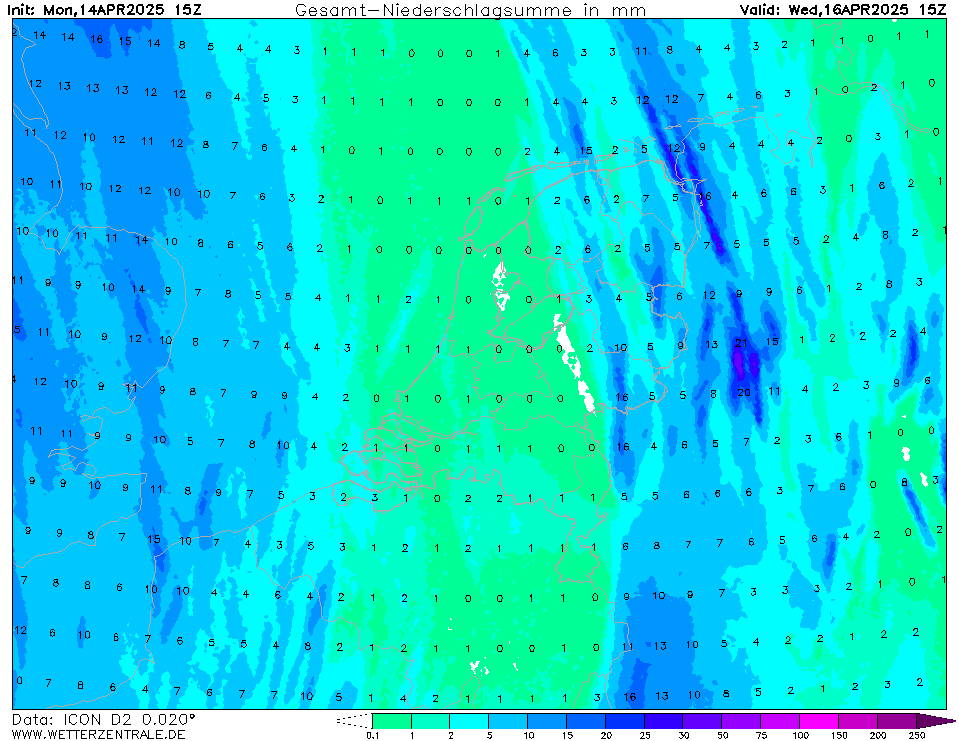 Nog een klein beetje hoop voor het zw bij het EC. In tegenstelling tot de fijnmazige modellen. Die laten de neerslag op weg naar het zw van Nl deactiveren en vervolgens later boven het no op de vore (her)activeren. Het zw (en met een ruime marge ook het midden) dus het omgekeerde epicentrum.
